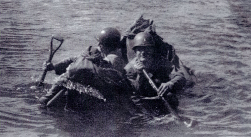 The evening before the attack we drove a half-track vehicle, which is a type of armored car, near the division outpost. We camouflaged the vehicle with brush and headed up the hill to the outpost. We planned to depart just before dark, with two minutes of twilight left so we could cross the Kumsong River. The river was not deep, but I was glad we wore insulated boots, because the temperature was dropping rapidly.