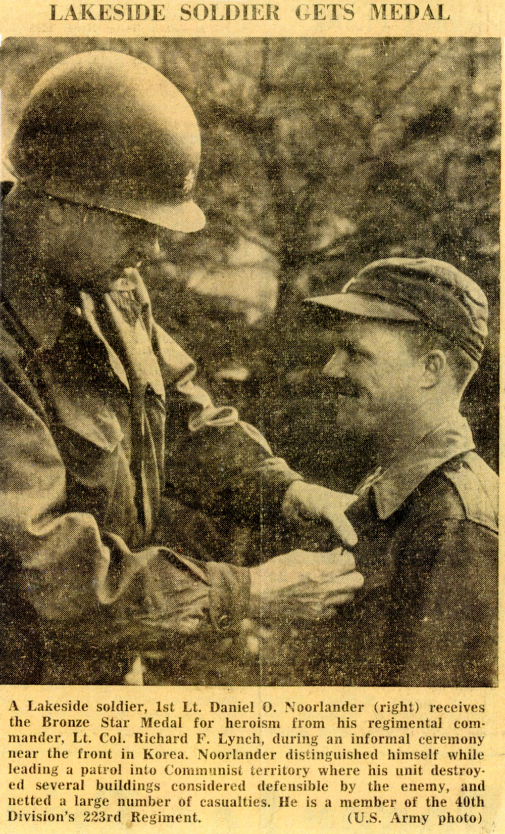 Lieutenant Noorlander was awarded the Disginguished-Service Cross for his heroism.