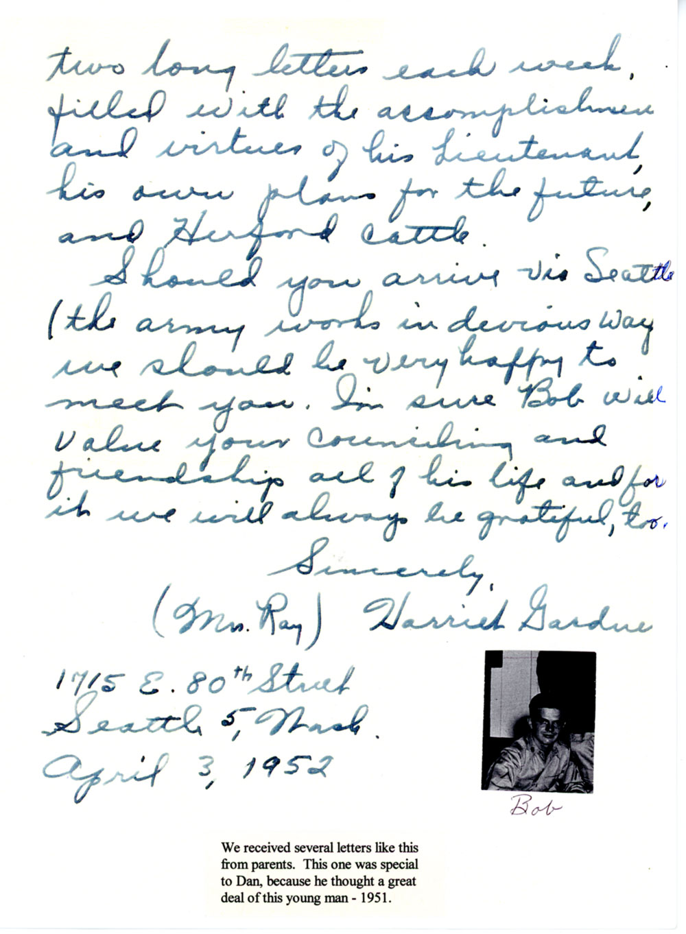 “They sent me the attached letters, which I have read may times. All Dan’s posterity will be able to read about how well he served his country as a dedicated soldier, as he fought for the liberty we enjoy in the United States of America.”